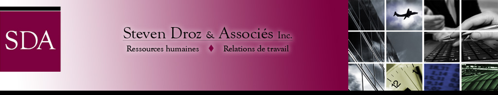 Bienvenue Steven Droz & Associés Inc. est une petite firme indépendante qui offre des services de ressources humaines et de relations de travail à titre consultatif ou intérimaire aux entrepreneurs et aux dirigeants qui veulent un accès rapide et efficace à des conseils d’experts. Alliant un riche parcours dans le domaine des ressources humaines et des relations de travail à une expérience à la direction générale de PME, nous savons comment les entrepreneurs et les gestionnaires pensent, ce qui les motive et surtout, ce qui est au cœur de leurs préoccupations. Nous travaillons en étroite collaboration avec nos clients pour veiller à ce que leurs stratégies en matière de ressources humaines concordent avec leur plan d’affaires, soient conformes aux lois en vigueur et représentent un atout concurrentiel convaincant au sein de leur marché. Nous sommes des exécutants. Nous allons partout où nos clients le demandent et nous livrons des résultats fondés sur les objectifs et délais préétablis. Steven Droz & Associés Inc. croit que les employés contribuent pleinement à la réussite et à la croissance de l’entreprise quand ils sont traités de manière juste, équitable et courtoise. Nous vous invitons à explorer notre site Web et si nous pouvons faire quoi que ce soit pour votre organisation, n’hésitez pas à communiquer avec nous. |
